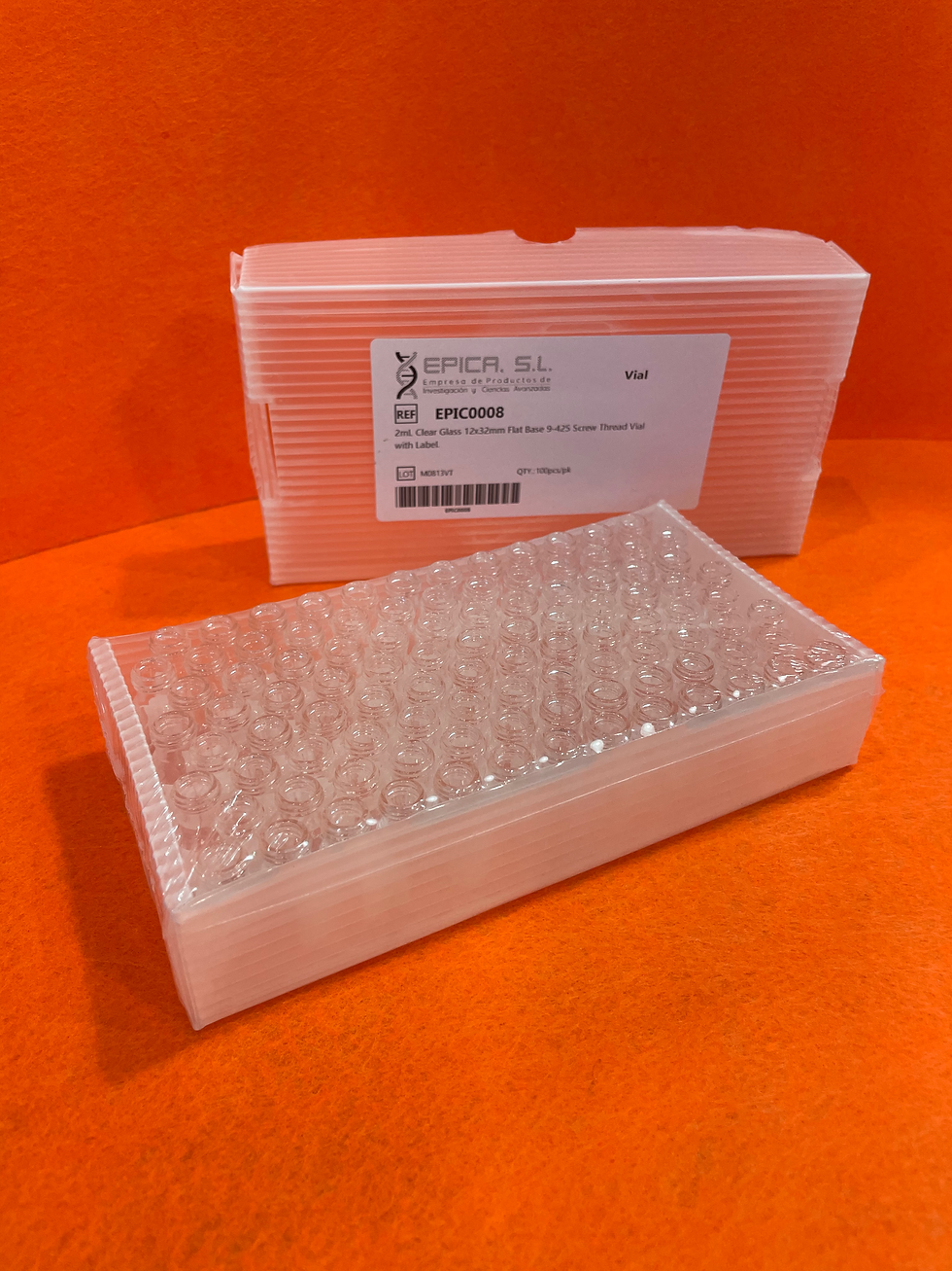 2mL Clear Glass 12x32mm Flat Base 9-425 Screw Thread Vial with Label. 100pcs/pk.